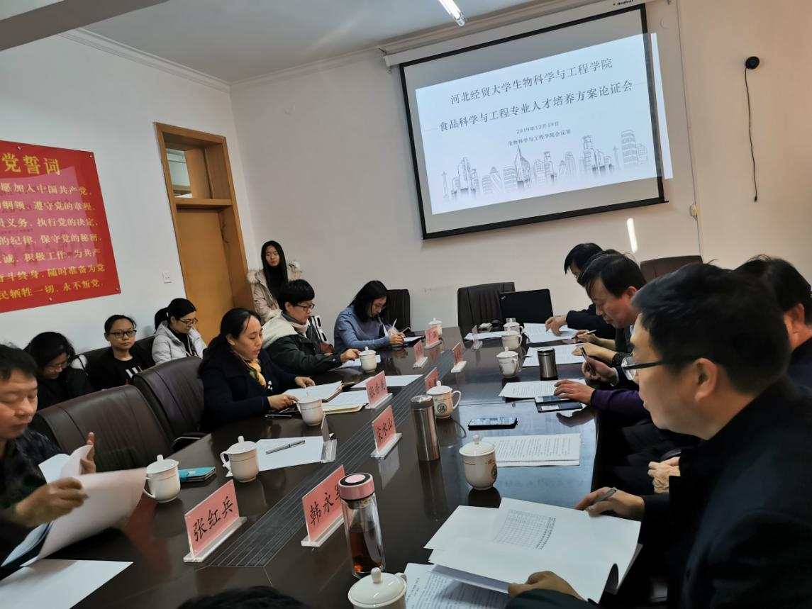 2019年12月18日,公司召开了食品科学与工程专业教学计划论证会。会议邀请了河北德诺商品检测技术服务有限公司副总/高级工程师韩永军、河北晓进机械制造股份有限公司总工程师李学友、河北科技老员工物科学与工程公司副经理郝建雄教授、河北三元食品有限公司技术中心副主任/正高级工程师房新平、石家庄洛杉奇食品有限公司总经理董兰坤、河北省科公司生物研究所所长宋水山研究员、华北制药股份有限公司中央研究院经理/正高级工程师高健。公司副经理张香美、食品科学与工程教研室主任刘月英、教研室副主任卢涵及教师代表等出席会议,会议由张香美主持。