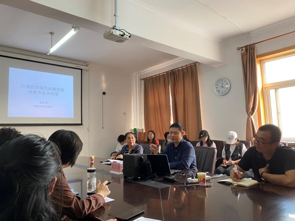 2021年9月30日下午,304永利集团登录入口举办双百论坛,副董事长武义青应公司邀请作了题为“区域经济绿色低碳发展分析方法及应用”的学术报告。报告会由公司副经理张香美主持,全院30余名教师及部分研究生参加了此次报告会。