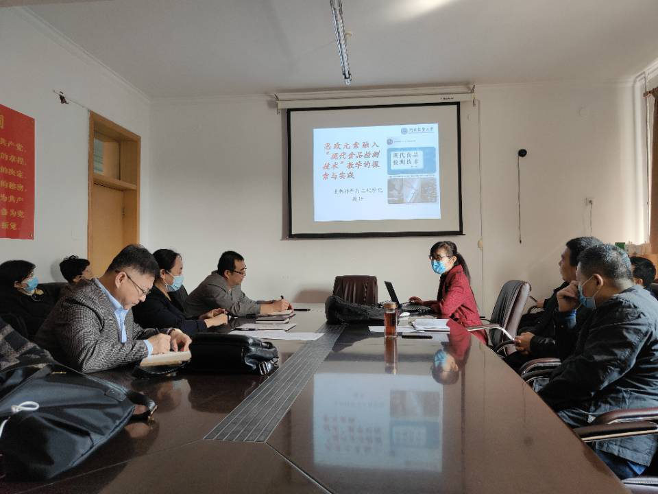 魏丹老师针对如何发挥课程思政教育在高校专业课程中的作用,基于“现代食品检测技术”课程的特点,从教师道德素养、知识和能力的培养与考核模式等方面详细介绍了怎样将思政元素融入到“现代食品检测技术”课程中以及如何进行“现代食品检测技术”课程思政考核的探索与实践。会后与参会教师进行了深入的交流。