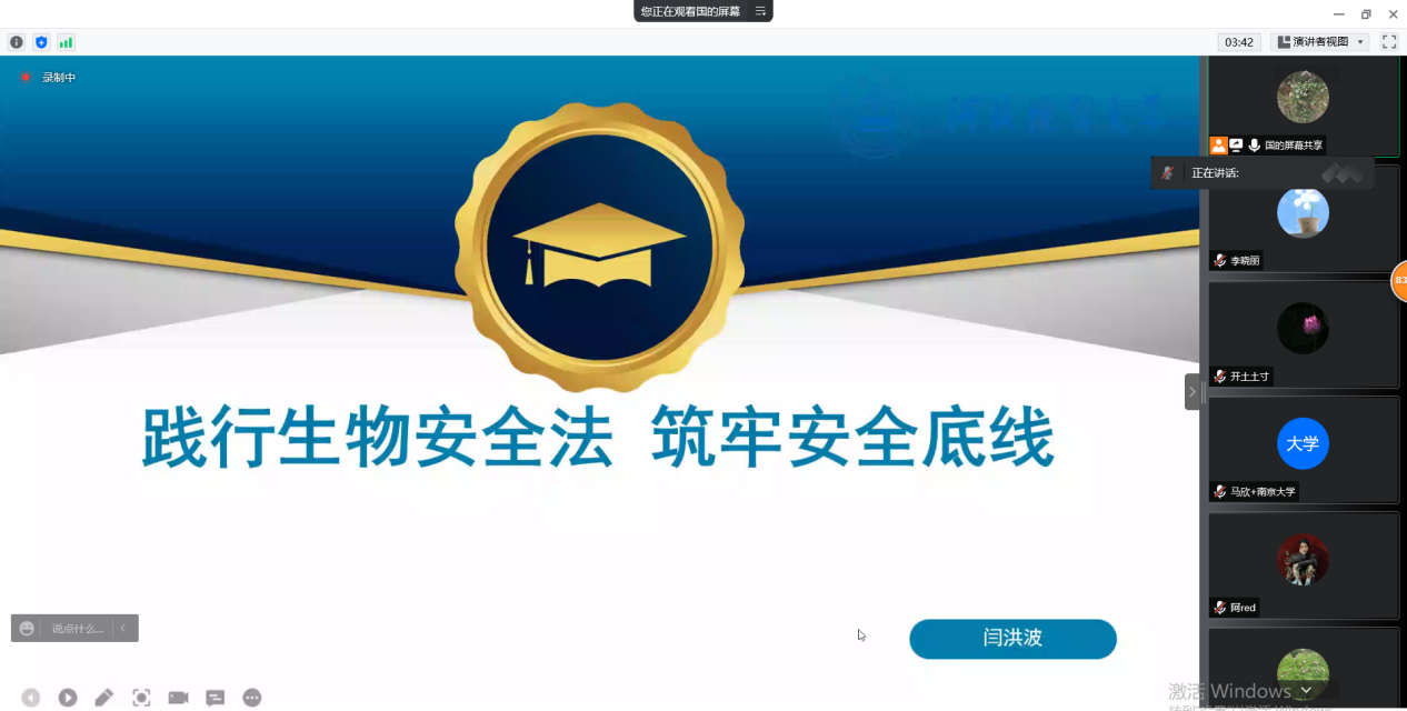 4月28日下午,304永利集团登录入口举办双百论坛,由闫洪波副教授通过腾讯会议作了《践行生物安全法筑牢安全底线》的专题报告,公司内外师生40余人参加。
